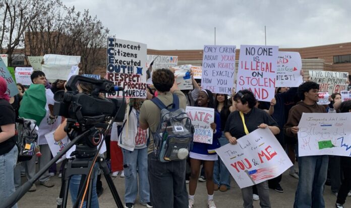 A viral video circulating online shows a tense moment at a suburban Chicago high school where a student holding a sign reading “I Love ICE” was confronted and punched by another student during what appears to have been an anti-ICE protest or walkout on campus.